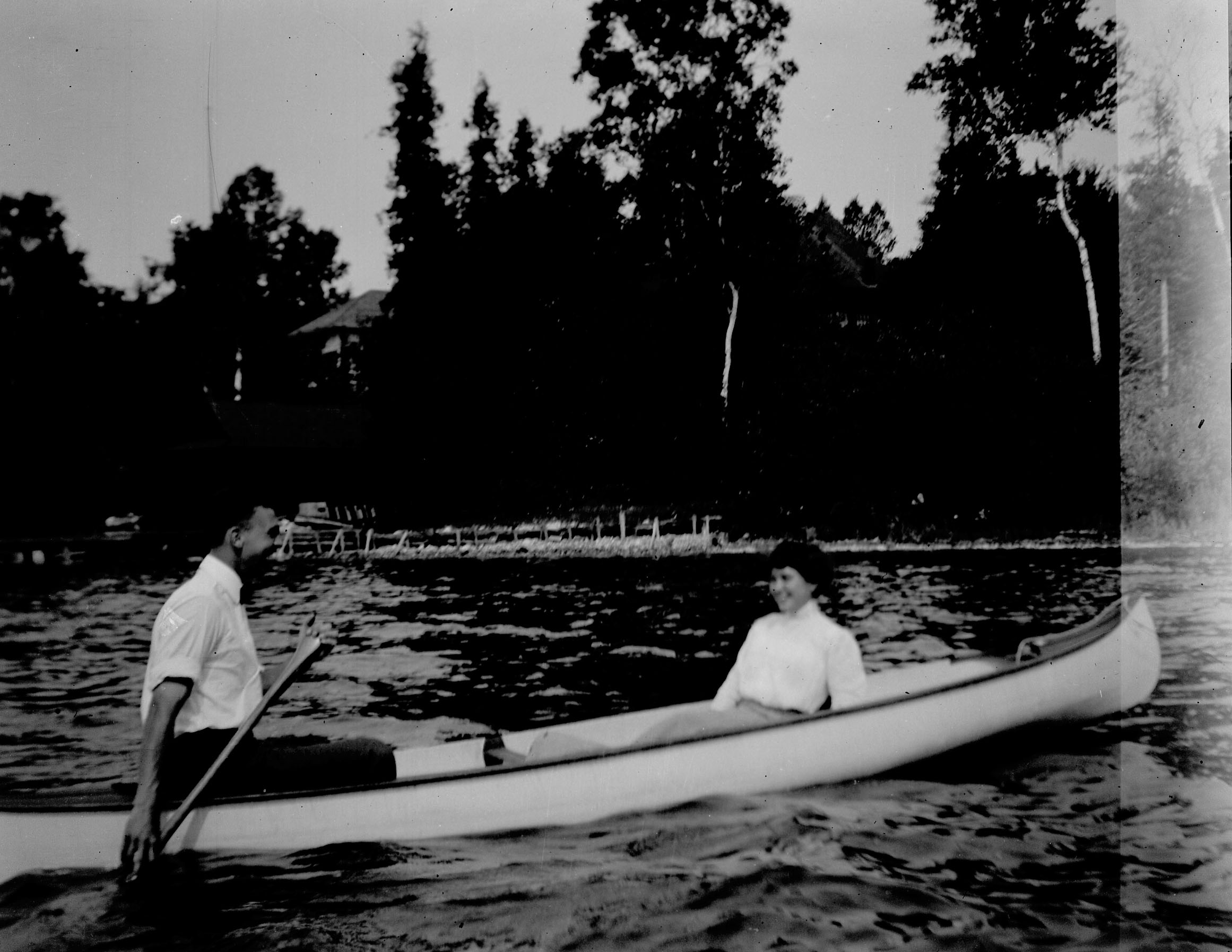 - Unidentified people in canoe in Les Cheneuax, part of the Leopold family photos, ca. 1910-19.