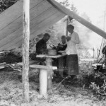 - Group camping under tent at Les Cheneaux, believed to be Leopold family relatives, ca. 1909-19.